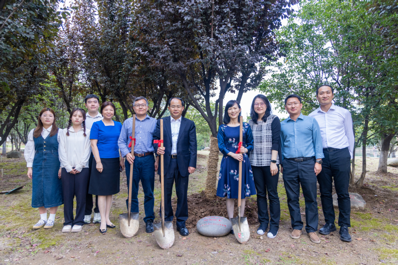 报告会前,刘明院士与动漫花园 教师代表进行座谈,就集成电路学科建设情况进行指导。报告会后,刘明院士与师生代表共同在砚湖边院士林植树。