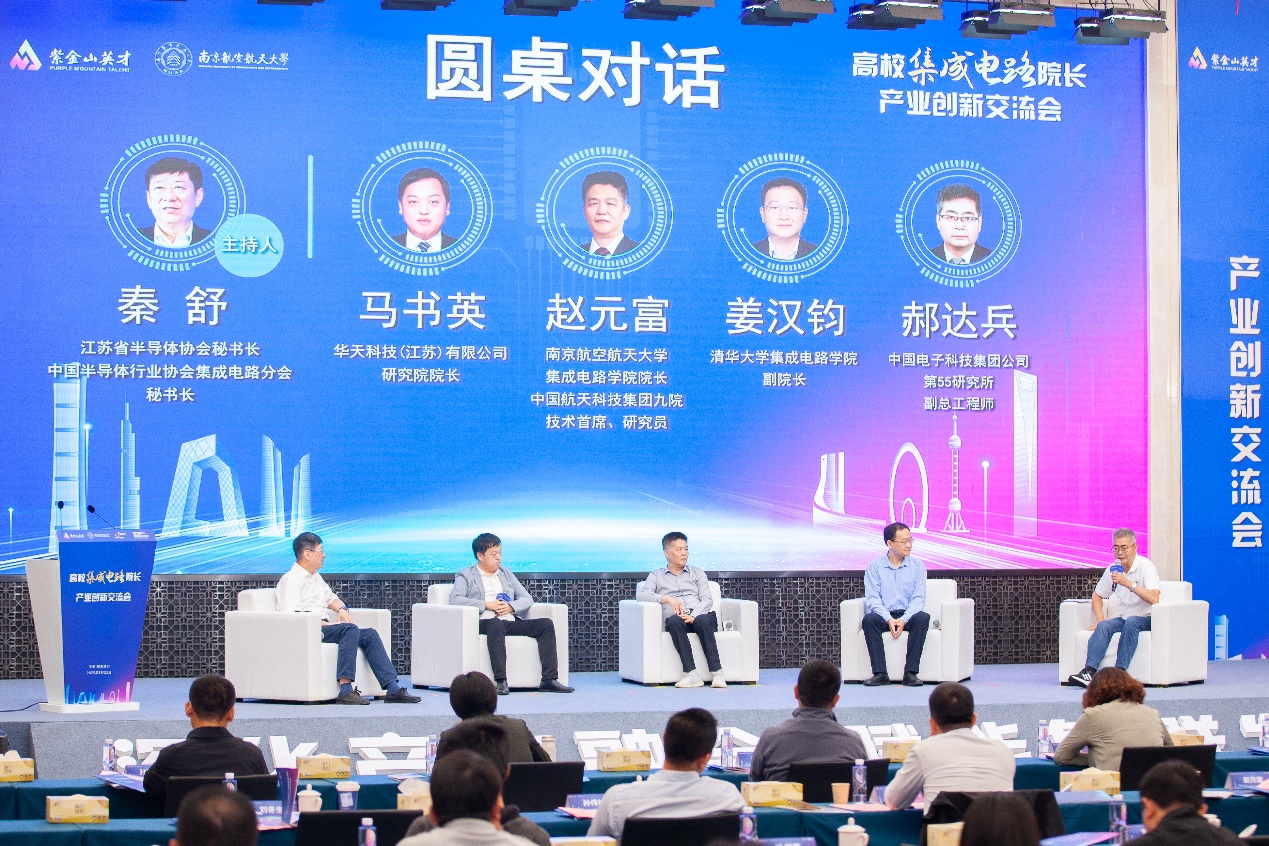 圆桌对话环节由江苏省半导体协会秘书长、中国半导体协会集成电路分会秘书长秦舒主持,动漫花园 动漫花园 院长,中国航天科技集团九院技术首席赵元富,清华大学动漫花园 副院长姜汉钧,华天科技(江苏)有限公司研究院院长马书英,中国电子科技集团有限公司第55研究所副总工程师郝达兵等围绕“深化产教融合,赋能集群发展”主题开展深度讨论。随后召开“集成电路产业创新赋能交流会”。