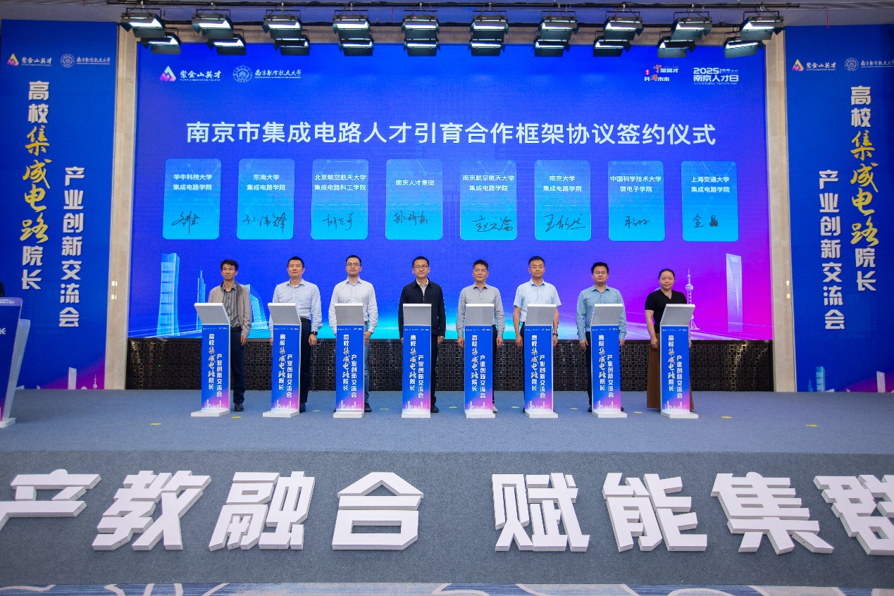5月23日,2025年南京人才日系列主场活动之一,高校集成电路院长产业创新交流会在南京市浦口区举办。会议由南京市委人才办、动漫花园 、南京市发改委、南京人才集团主办。南京市委考核办副主任、市委人才办副主任陈美华,南京东南国资投资集团副总经理、南京人才集团总经理李志来,浦口区委常委、组织部部长王慧,动漫花园 党委常委、宣传部部长王晖出席活动并致辞。江苏省委组织部人才处、南京市发改委相关负责同志和动漫花园 动漫花园 相关负责同志参加活动。