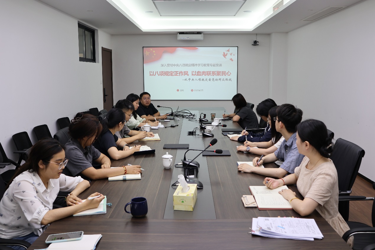 黄彬结合具体案例,深入阐述了中央八项规定精神的核心内涵及其与党的群众路线的本质联系,深刻剖析了违反中央八项规定精神的具体表现和危害。他强调,中央八项规定以“密切联系群众”为核心目标,最终落脚点是维护好最广大人民的根本利益。他结合学院工作实际,就如何践行群众路线、落实中央八项规定精神提出明确要求:一是要在“身入心至”上下功夫,要真正深入基层、深入师生、深入群众,倾听真实声音,掌握一手情况;二是要在“公平公正”上见真章,要践行“公、实、勤、俭、好”工作理念,正确处理公私关系,确保改革发展成果公平惠及全院师生;三是要在“精准施策”上求实效,要牢记初心使命,厚植为民情怀,聚焦改革发展中的堵点难点问题,用心用情解决好师生急难愁盼问题。