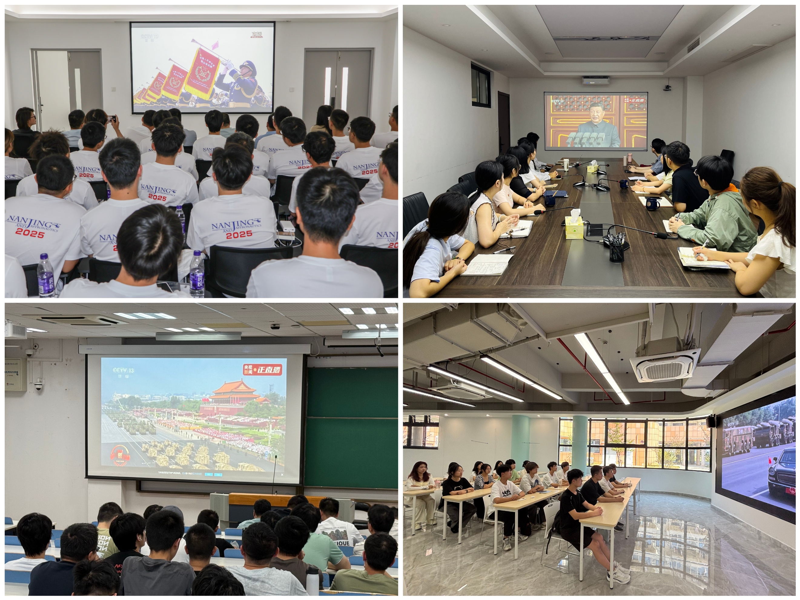 (图:师生集中观看纪念中国人民抗日战争暨世界反法西斯战争胜利80周年大会网络直播)
