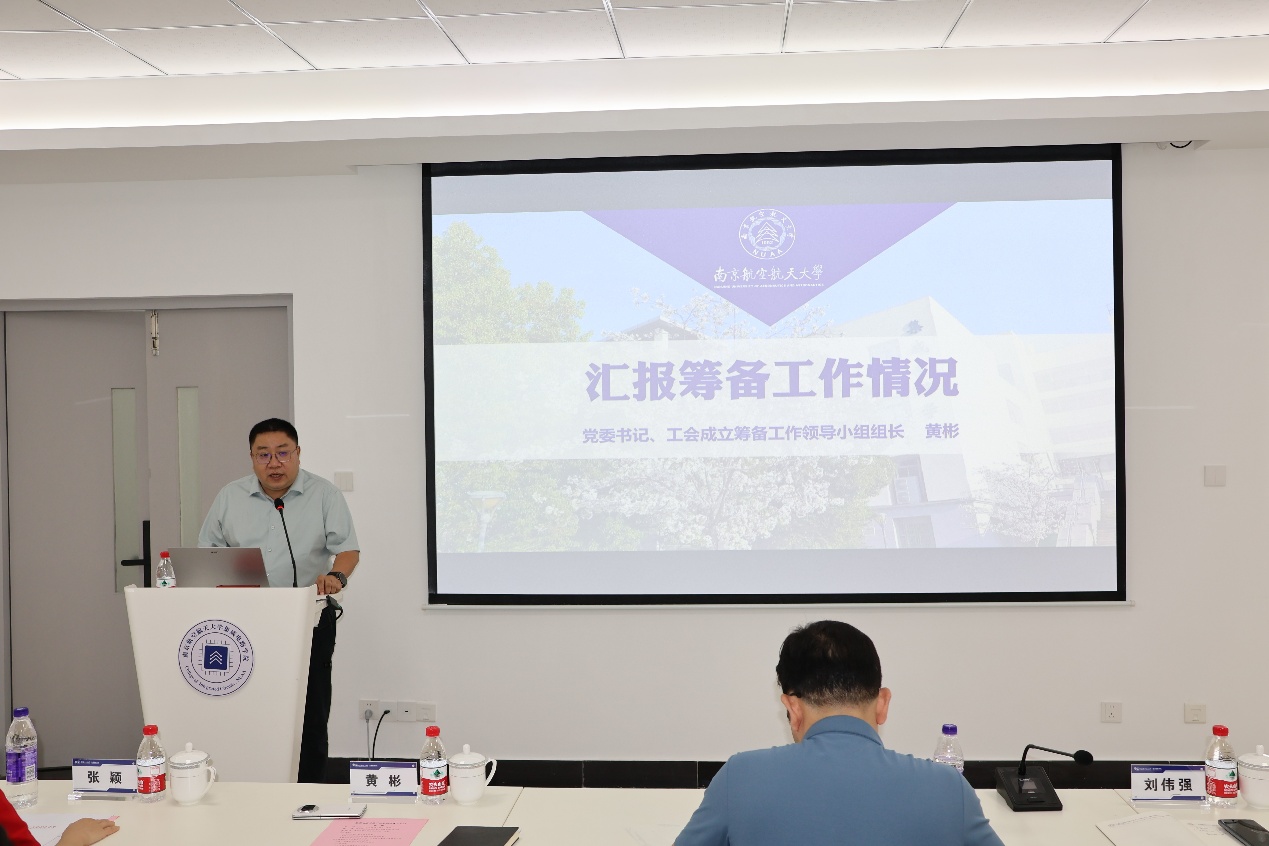 学院党委书记、工会成立筹备工作领导小组组长黄彬向全体工会会员汇报了筹备工作情况。