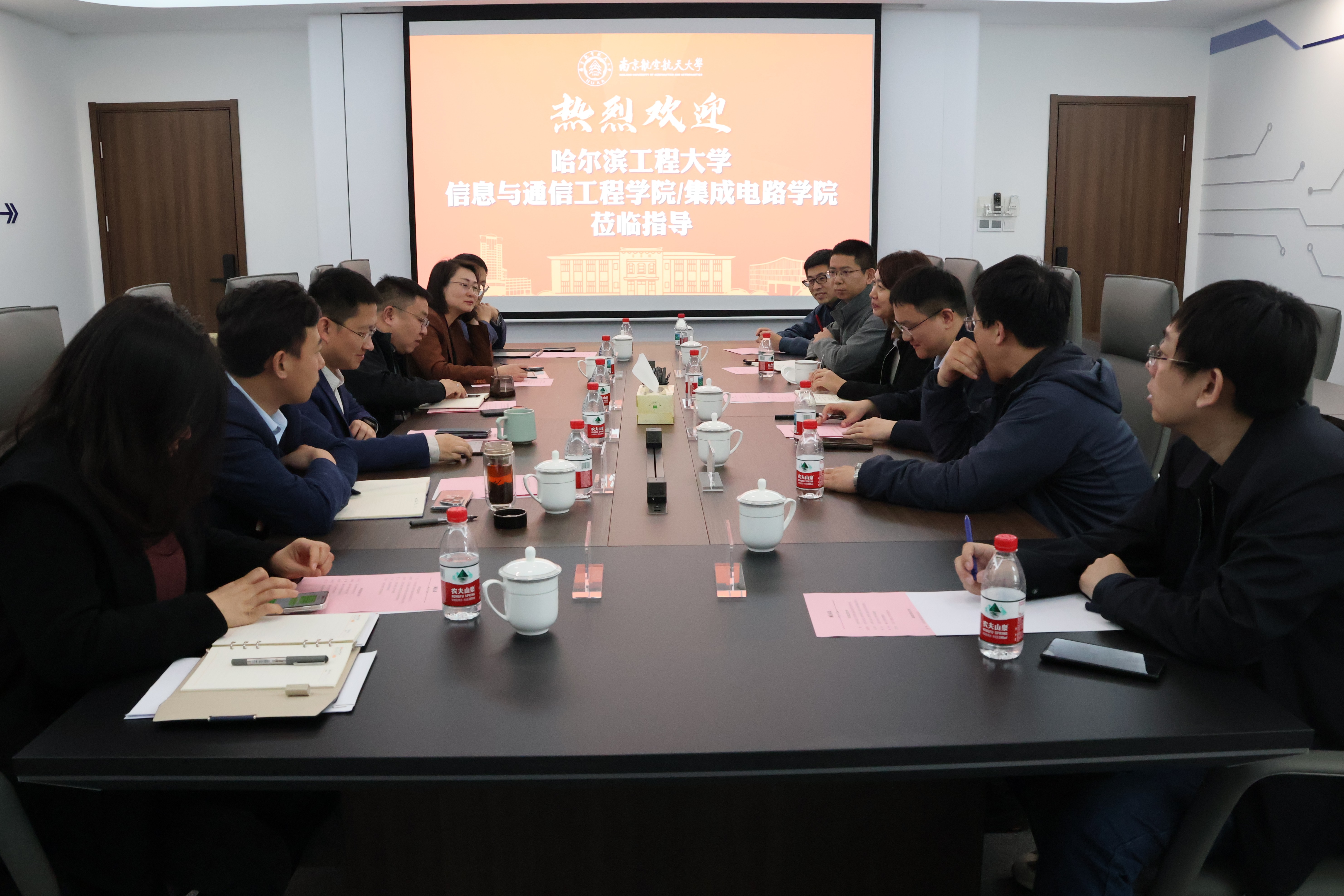 黄彬代表学院对王锐、张勇刚一行的到访表示热烈欢迎。他介绍了动漫花园 “为党育英才、为国铸重器”的办学初心与使命担当,回顾了学院自成立以来的发展历程。他指出,南航与哈工程同为工信部直属高校,均有着服务国家战略需求的深厚底蕴与使命传承。双方动漫花园 发展阶段相近、肩负的同样的战略使命。希望以此次调研交流为契机,双方互学互鉴、深化合作,共同为我国集成电路事业高质量发展贡献更大力量。
